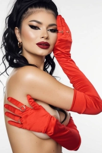 Her slim silhouette is complemented by enhanced boobs - this young lady is very busty, creating a look that feels both youthful and undeniably feminine. With sexy hazel cum to bed eyes that undress you and draw you in as soon as she sees you.