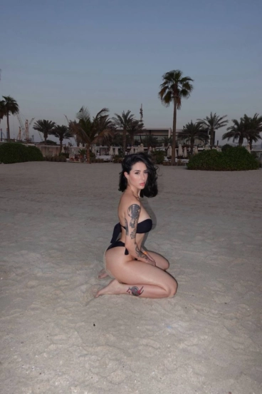 Brazilian-born and blessed with an incredible, athletic figure, this 27-year-old brunette is a walking fantasy — sculpted curves, dark tanned skin, 34C breasts, and the kind of tattoos that scream sexy.